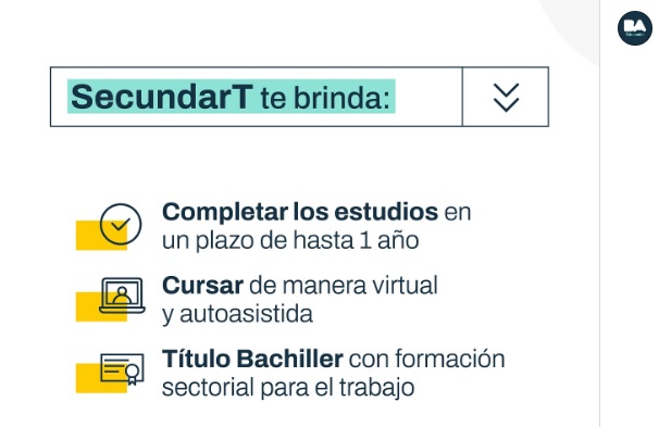 SecundarT es una propuesta educativa flexible, personalizada y orientada al mundo del trabajo impulsada por el Ministerio de Educación de la Ciudad, a través de la Agencia de Habilidades para el Futuro, destinada a personas mayores de 25 años que se encuentren trabajando y deseen completar sus estudios secundarios.